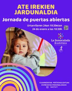 📢 iVen a conocer tu cole! 📆Puertas abiertas: 24 de enero a las 10:30. ✍️Inscripciones: https://docs.google.com/forms/d/e/1FAIpQLSeuptpOJh4zS8tLl9LvJpPI8lpO__XyPhiG2jcrtF9foRsMHQ/viewform ☎️ 94 437 32 71 – 628 811 560